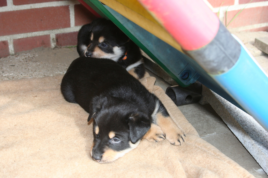 10.03.2015 Nr.3 ist inzwischen die Kleinste und Leichteste. Dafür war sie die erste, die die Welt außerhalb der Wurfkiste erkundet hat. Sie kann schon gut laufen, albert nach den Mahlzeiten gerne noch ein bißchen mit den anderen herum.