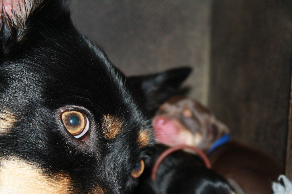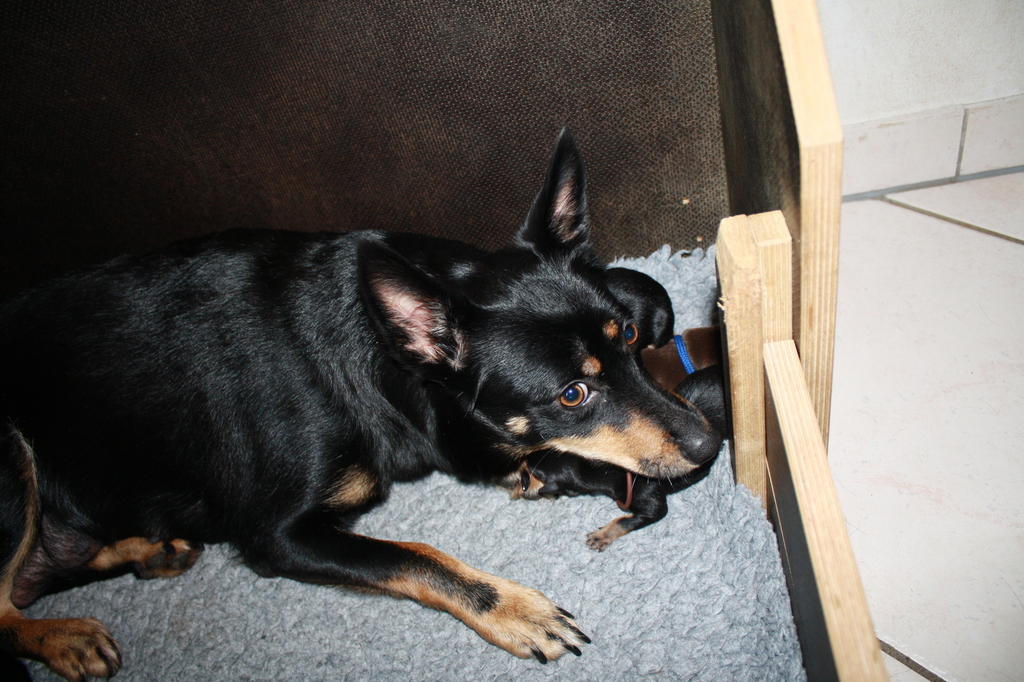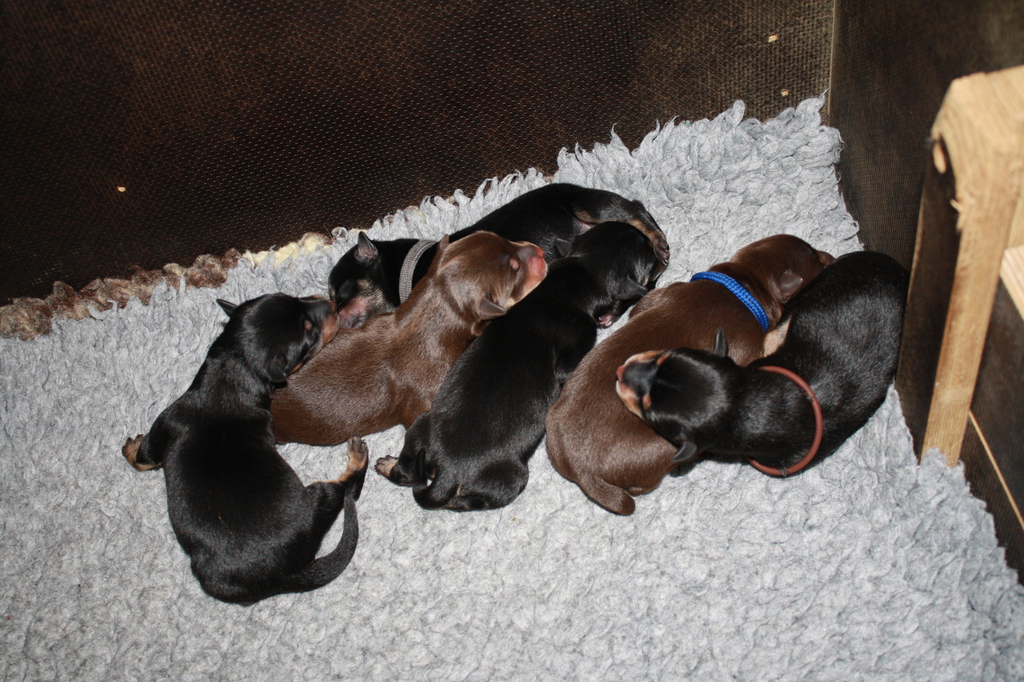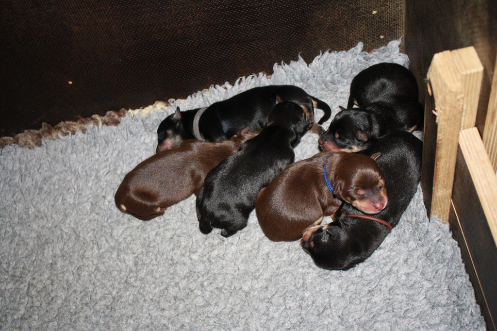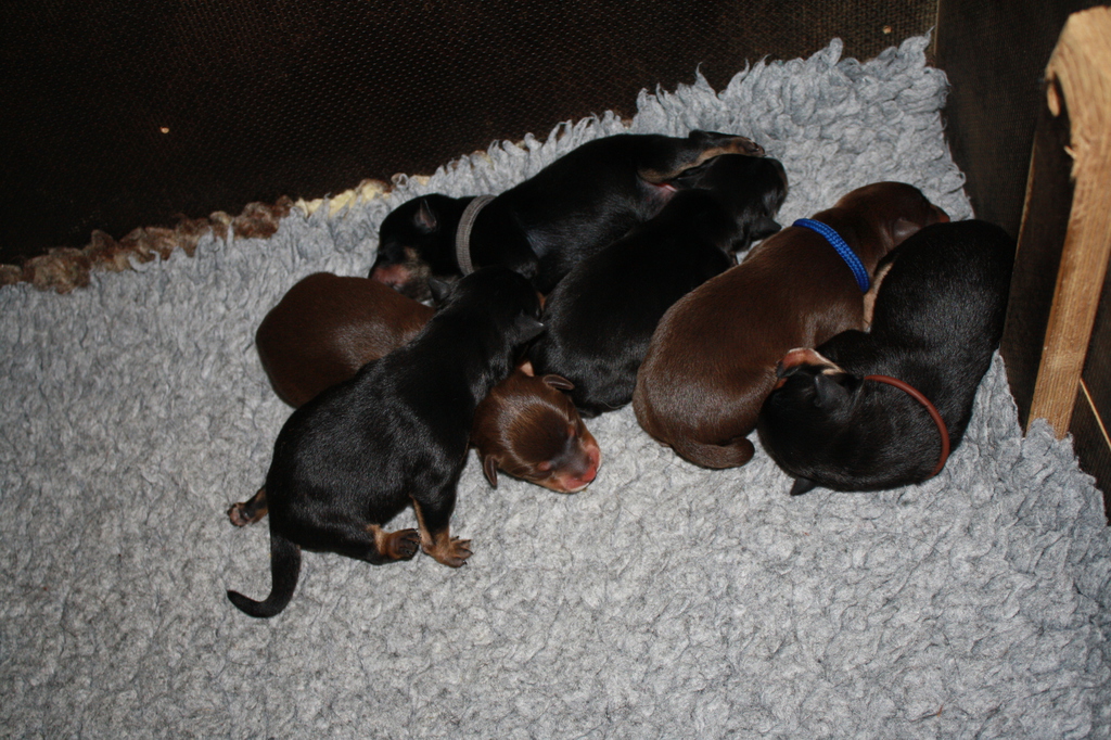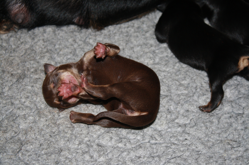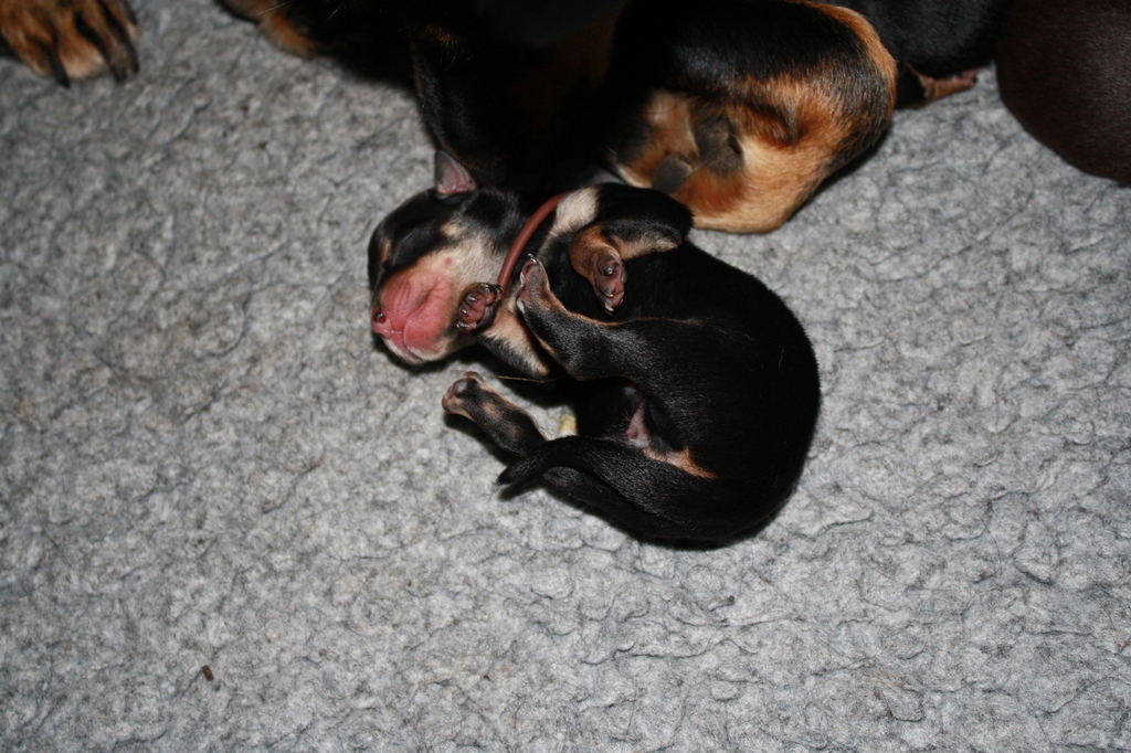 C-Wurf , 1 Tag alt. Gar nicht so einfach, ein paar gute Fotos hinzukriegen. Erst recht nicht, wenn die Mama Luzie heißt und eine Super-Mama ist, die ganz genau aufpasst, daß keiner verloren geht.